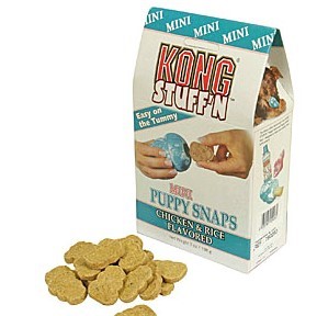 Biscuit naturel croquant, poulet et riz, conçu pour garnir les jouets kong chiots.